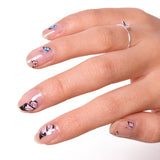 Att applicera dessa klistermärken är enkelt. Dra bara av dem försiktigt och tryck försiktigt på naglarna. Deras självhäftande baksida säkerställer ett säkert grepp. När det är dags att ändra din design kan klistermärkena enkelt tas bort utan att lämna några rester.
