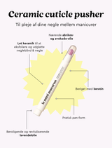 Le Mini Macaron Exfoliating Cuticle Pen är utformad för att göra mycket mer än att bara trycka tillbaka nagelbanden. Den keramiska spetsen exfolierar skonsamt, tar bort döda hudceller och jämnar ut fåror och ojämnheter på nagelytan. Samtidigt tillför den närande oljor och vårdande ingredienser som stärker och skyddar naglarna.