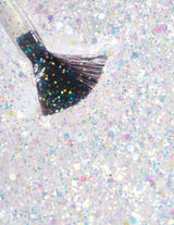 Seashell Top Coat: En perlemorsagtig gel top coat med store og små glitterstykker i grøn, blå og lilla, der virkelig skaber en drømmende prismeeffekt.