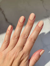 En helt neutral og let transparent gel polish farve, der giver neglene et naturligt og poleret udtryk med en blød, diskret glans.