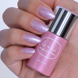 Bemærk! Denne lak er noget tykkere i konsistensen pga. der er tilført meget glimmer. Dette kan gøre man lige skal øve sig på at få lagt de tynde lag, men til gengæld giver den en længere holdbarhed. Lakken er smule transparent.