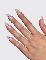 - Påfør klistermærket ovenpå neglen.
