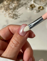2. Når din gellak er hærdet, er det tid til at påføre Le Pearl. Produktet leveres med en medfølgende pulver applikator, hvor der er en børsten i den anden ende til at fjerne overskydende pulver fra neglene. Dyp forsigtigt pulver applikatoren i Le Pearl-pulveret og poler pulveret på dine negle. Fjern overskydende pulver med børsten.