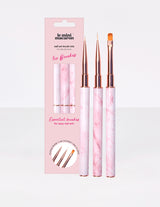 Skab neglekunst derhjemme som de professionelle med denne trio af børster med et greb, der er lavet for at give maksimal kontrol og syntetiske børster af høj kvalitet som gør det lettere at male med. Sættet indeholder 3 alsidige børster, der hjælper dig med at male sarte detaljer, perfekte linjer, franske spidser og meget mere med fejlfri nøjagtighed.