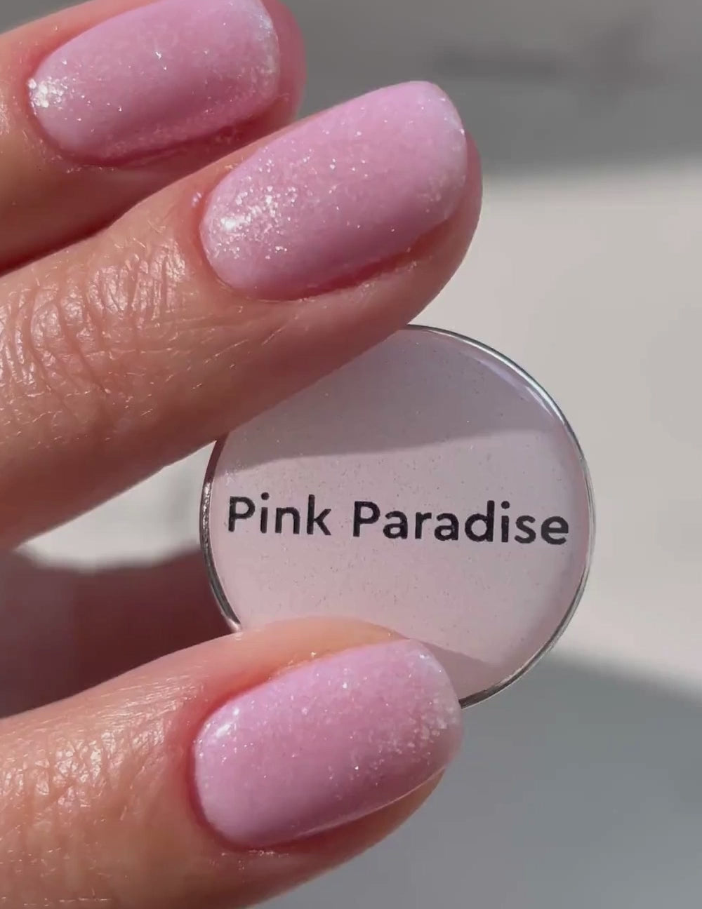 En lys pink gel polish farve (halvdækkende) med flot sølv glimmer giver dine negle et feminint og skinnende udseende. Farven tilføjer en touch af elegance og er et perfekt valg, når du ønsker at tilføre lidt ekstra bling til dine negle.